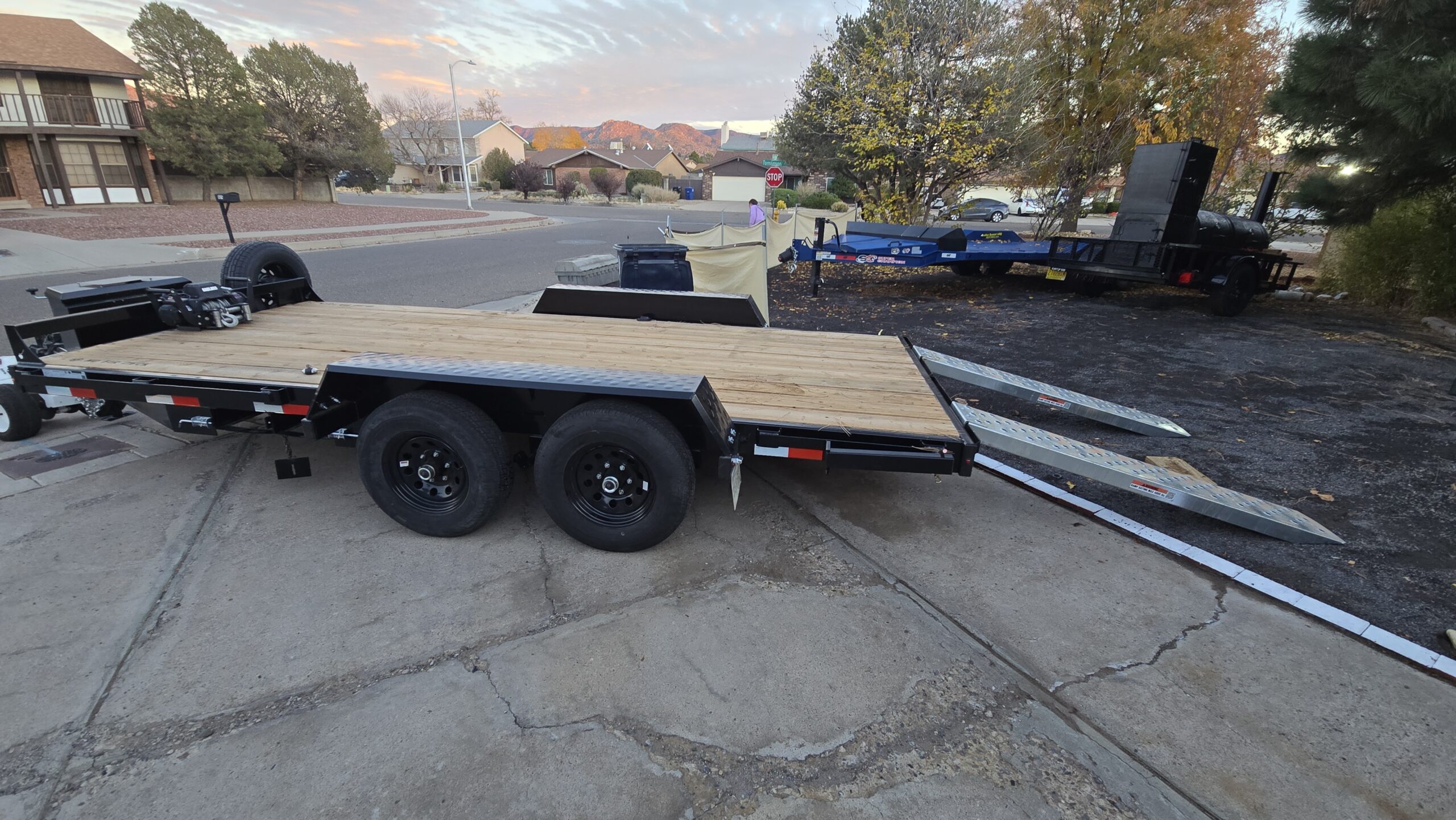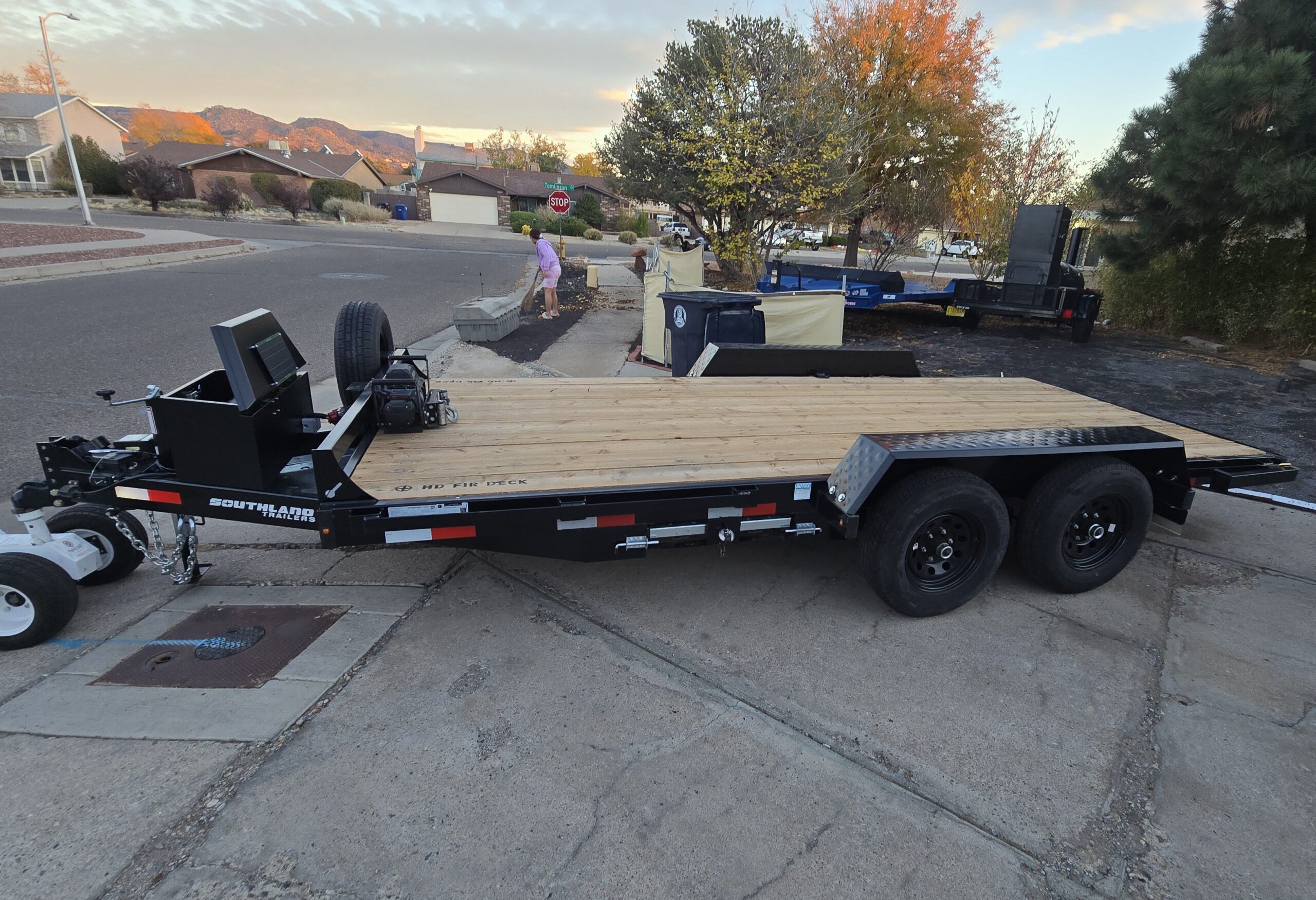 Built by Southland Trailers, this model is known for its durability, smooth towing, and professional-grade features. With a 10K GVWR, dual 5,200 lb axles, and electric brakes, it delivers stability and stopping power when you need it most. The wide 7ft deck and 16ft length provide plenty of space for larger loads, while heavy-duty loading ramps make loading and unloading simple.